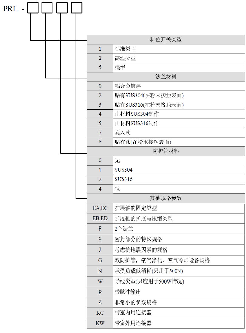 PRL-100型為PRL-100系列阻旋式料位開(kāi)關(guān)中的標(biāo)準(zhǔn)型號(hào)。